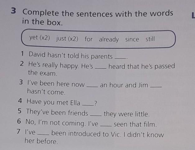 yet, just, for, yet, since, already, just