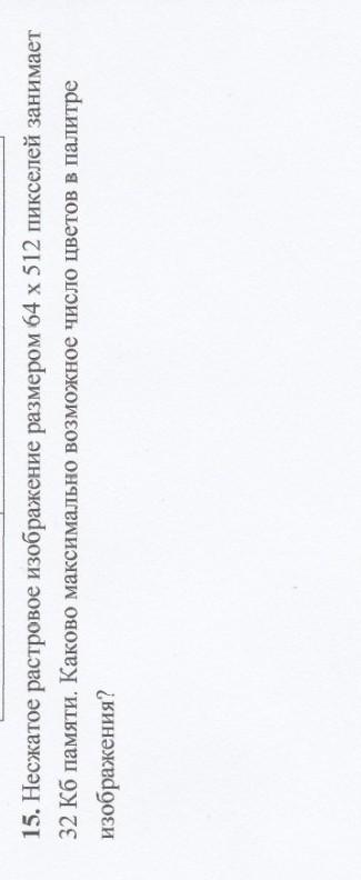 64*512=32768 точек 32*1024*8=262144 бит 262144/32768=8 - это глубина цвета а количество цветов равно 2^ 8 =256.