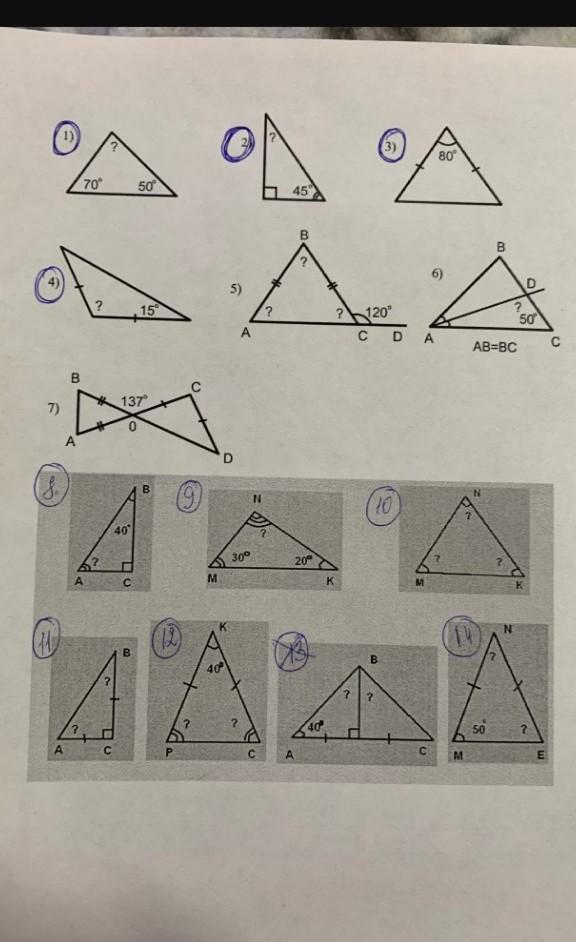 13.Обозначено что один из треугольников прямоугольный(имеет кут 90 градусов) и дано ещё кут 40 градусов.Опять же сума углов треугольника 180 градусов,отсюда: