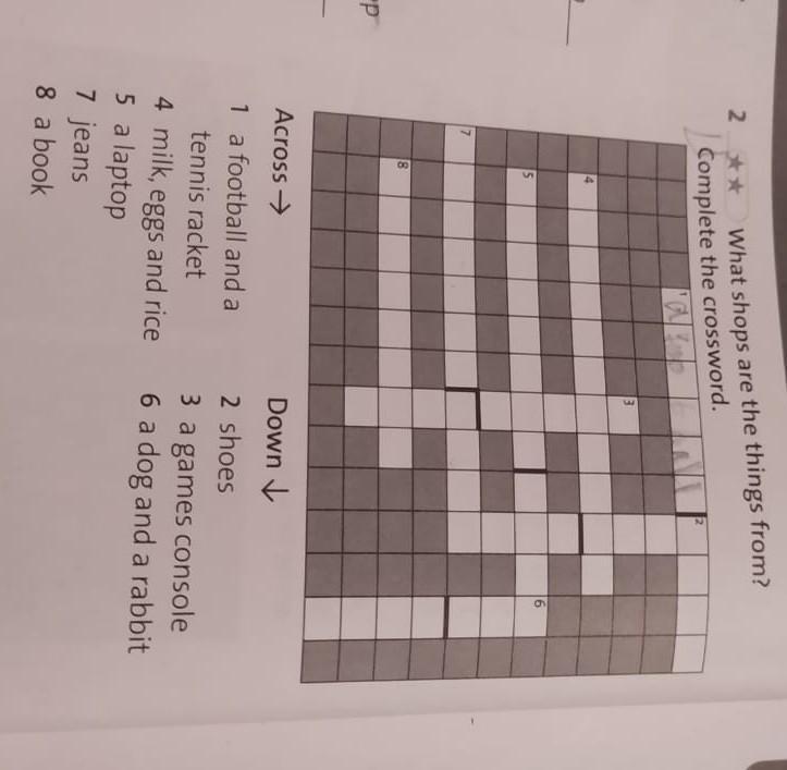 What shops are the things from?Complete the crosdword Помогите даю 150 баллов 5 класс