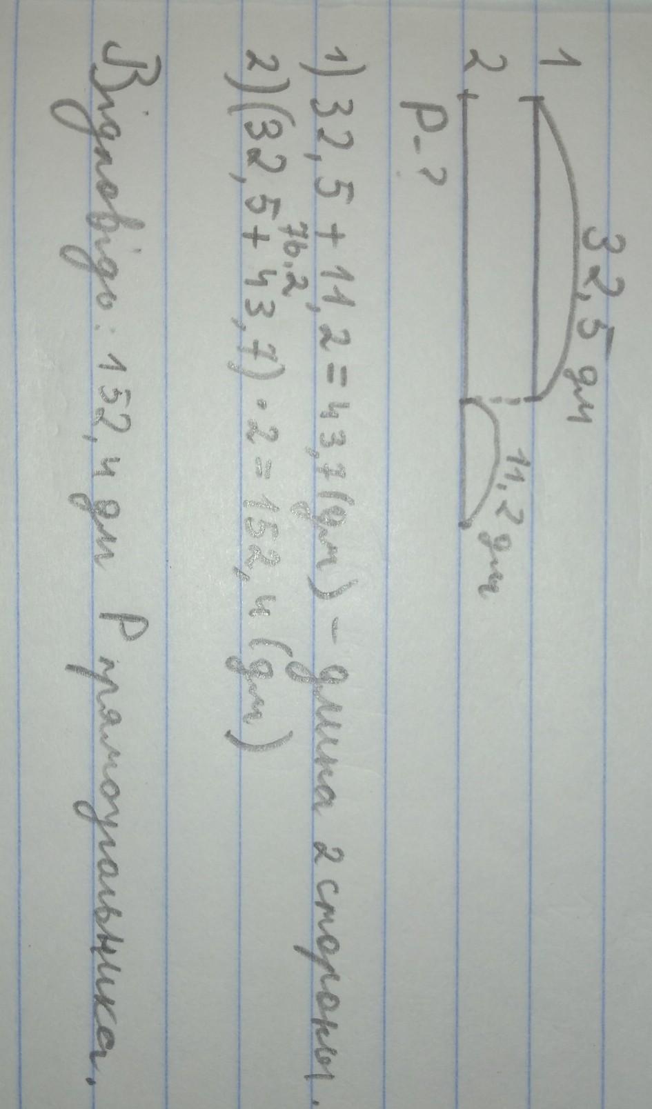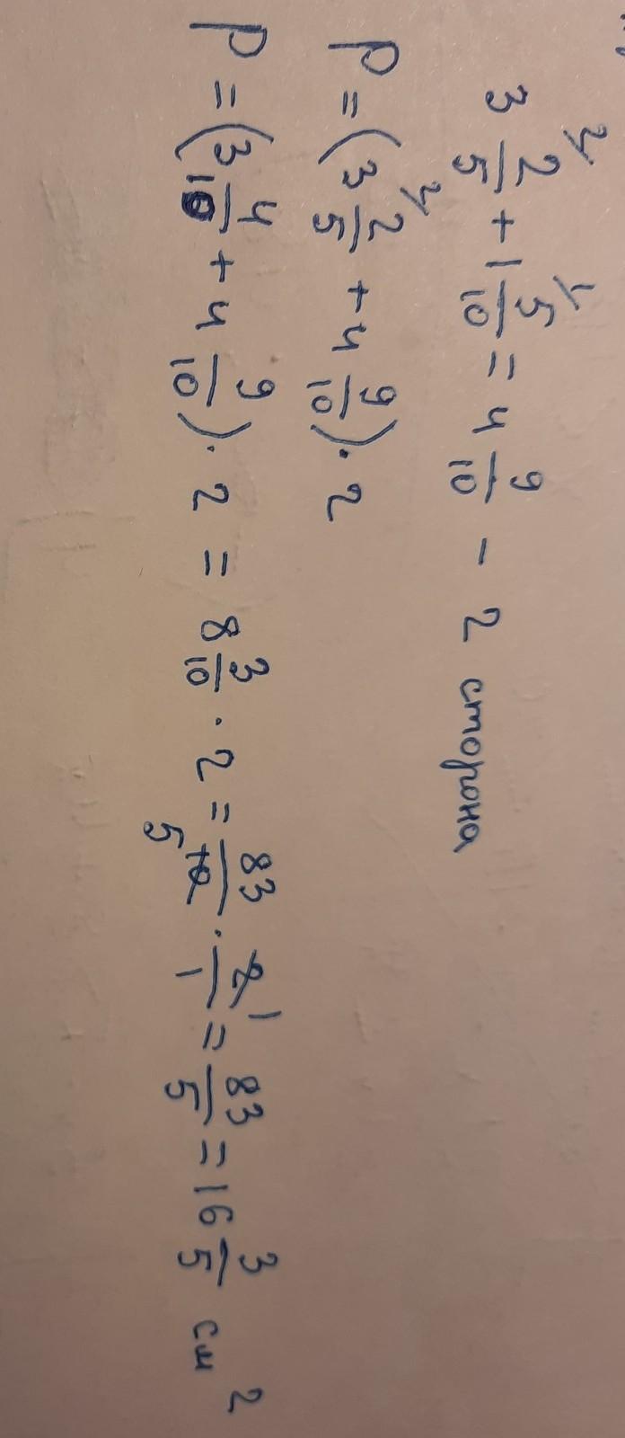 Найдите периметр прямоугольника 1 сторона которого 3 2/5 дм а другая длиннее её на 1 1/2 дм