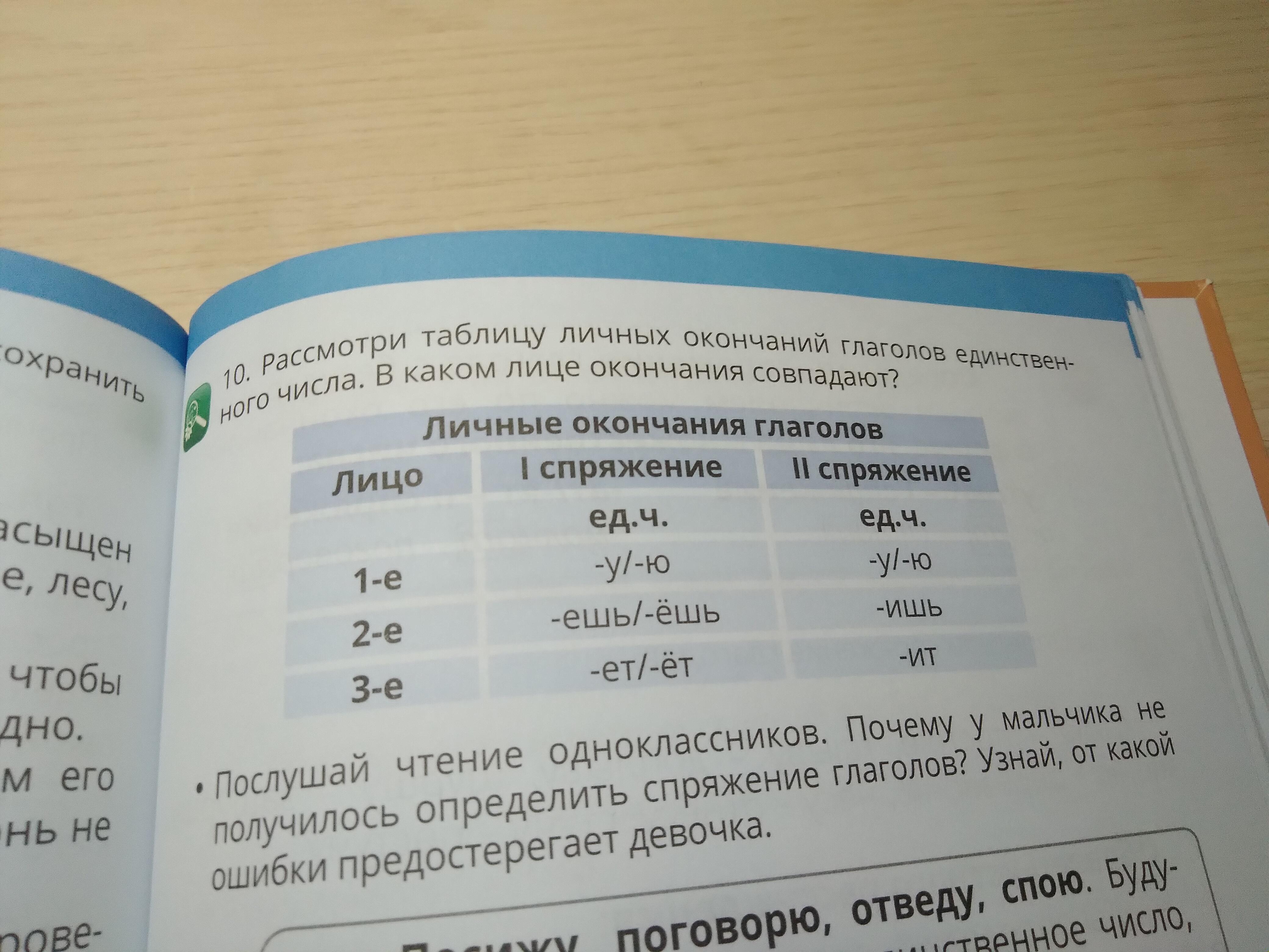 Расмотри таблицу личных окончаней глаголав единственова числа в какои леце аканчяния савпадают