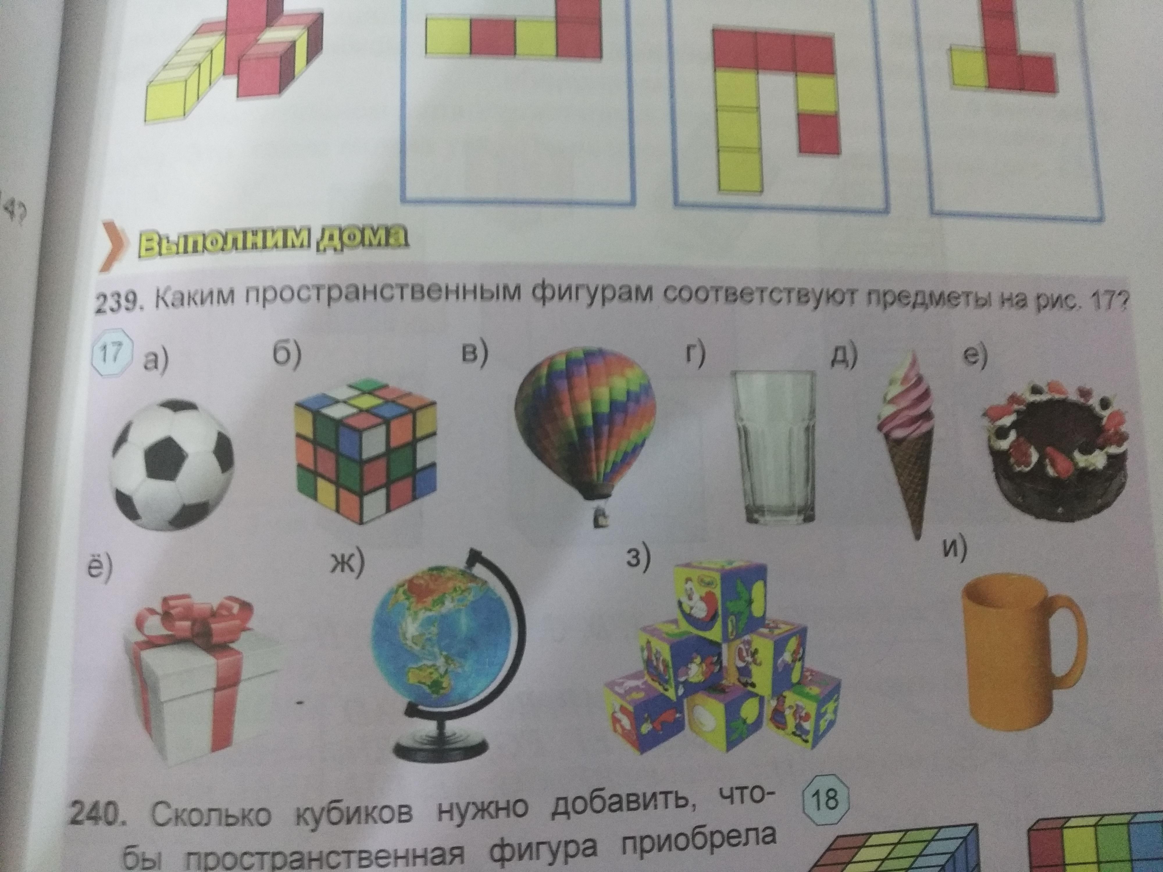 Каким пространственным фигурам соответствуют предметы на рисунке 17?