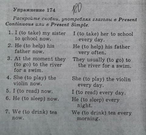 1. I'm taking my sister to school now I take her to school every day