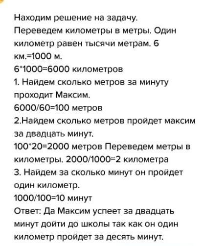 Максим дойти до школы за 20 мин, если его дом находится на рас-
