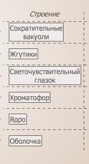 Светочуствительный глазок (стигма) улавливает солнечный свет, что обеспечивает движение организма в его сторону для фотосинтеза