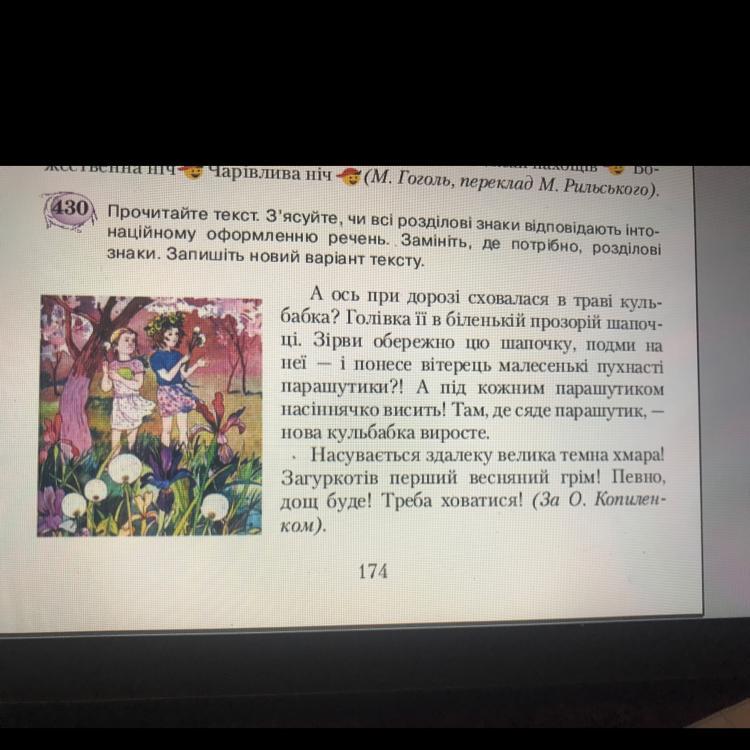 А ось при дорозі сховалася в траві кульбабка. Голівка її в біленькій прозорій шапочці. Зірвеш обережно цю шапочку, подмеш на неї — і поніс вітерець малесенькі пухнасті парашутики. А під кожним парашутиком насіннячко висить. Там, де сяде парашутик,— нова кульбабка виросте.