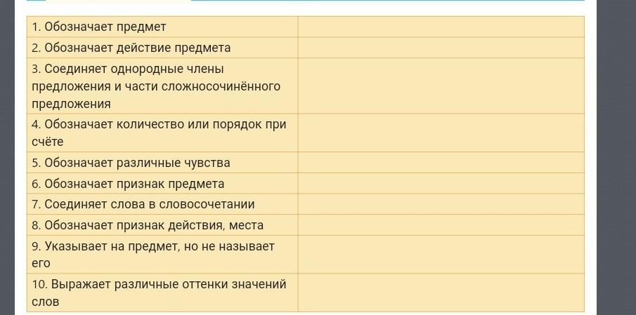13. Найдите в приведённых ниже предложениях слова, соответствующие общим значениям частей речи, и заполните ими таблицу, предварительно перечертив её в тетрадь.