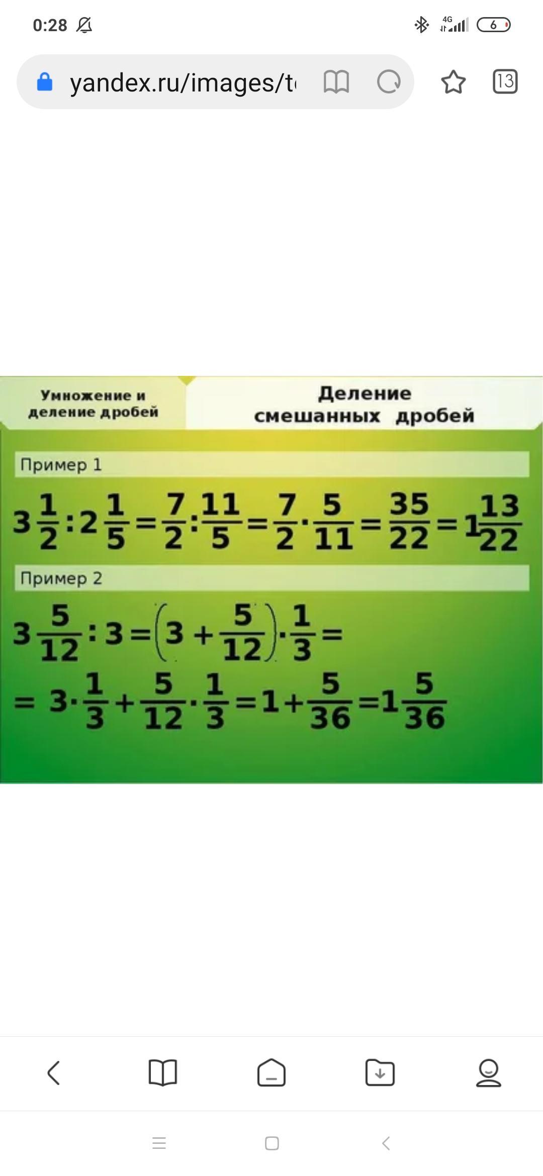 Чтобы поделить смешанное число на натуральную дробь нужно превратить их в неправильную дробь, после этого знак деления превратиться в знак умножение и правая дробь перевернётся ( дальше сократить если можно и посчитать ).