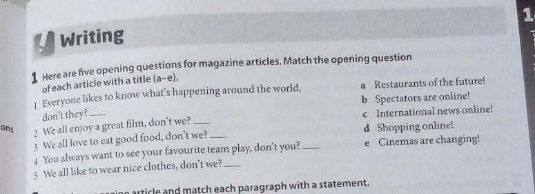 Here are five opening questions for magazine articles. Match the opening question of each article with a title (a-e)