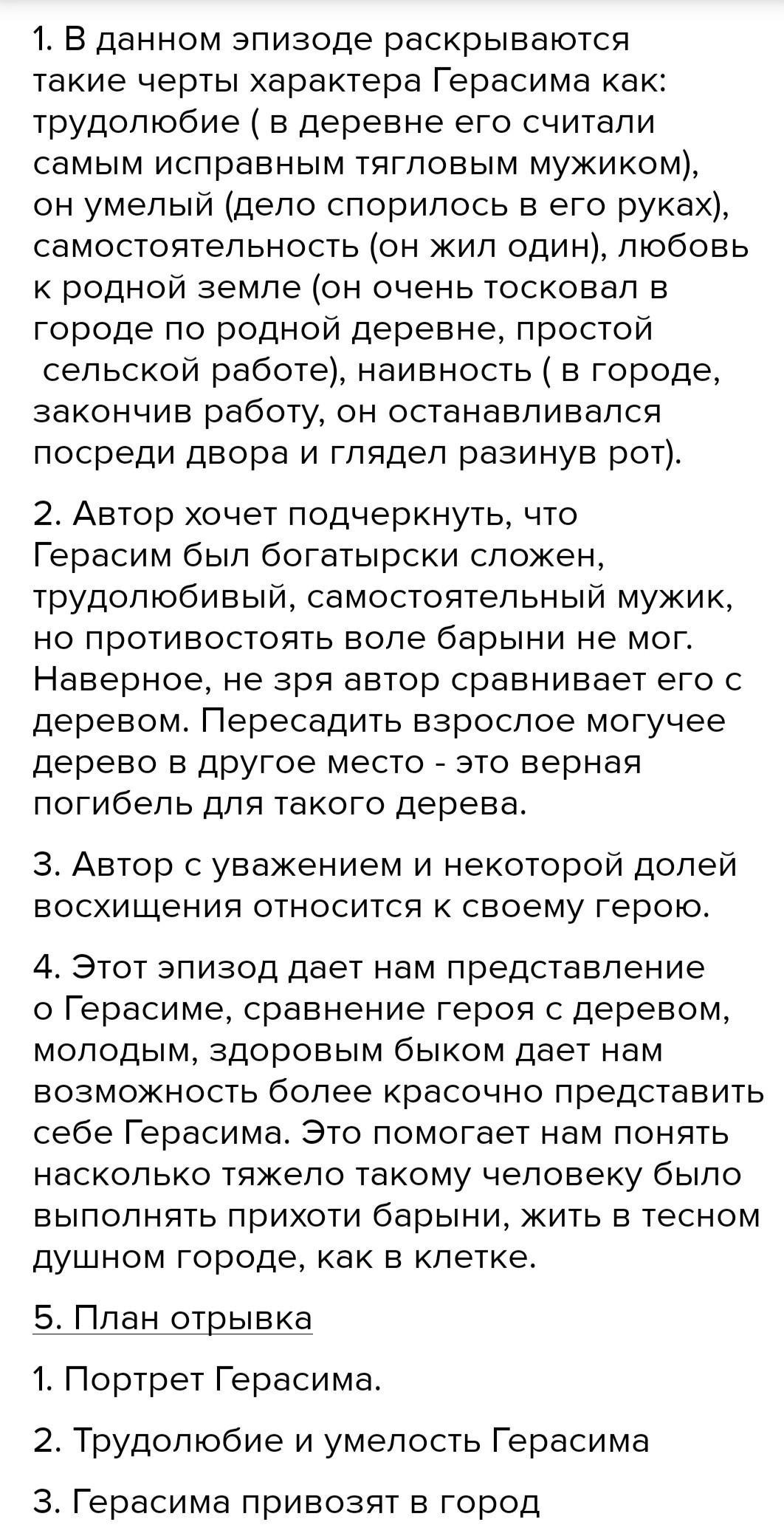 1. Какие черты характера Герасима раскрываются в данном эпизоде?