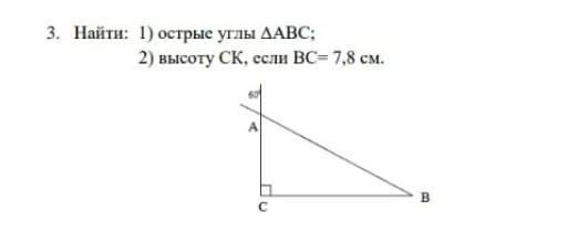 В треугольнике ВКС ВС является гипотенузой,а СК-катет ,который находится против угла 30 градусов,а значит СК=ВС/2=7,8:2=3,9 см