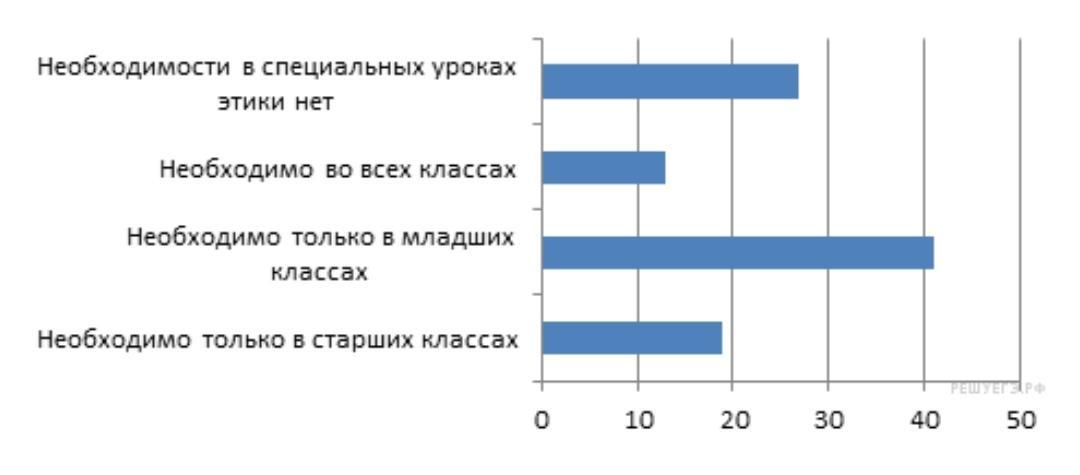 Наименьшее количество опрошенных высказались за введение уроков этики во всех классах.
