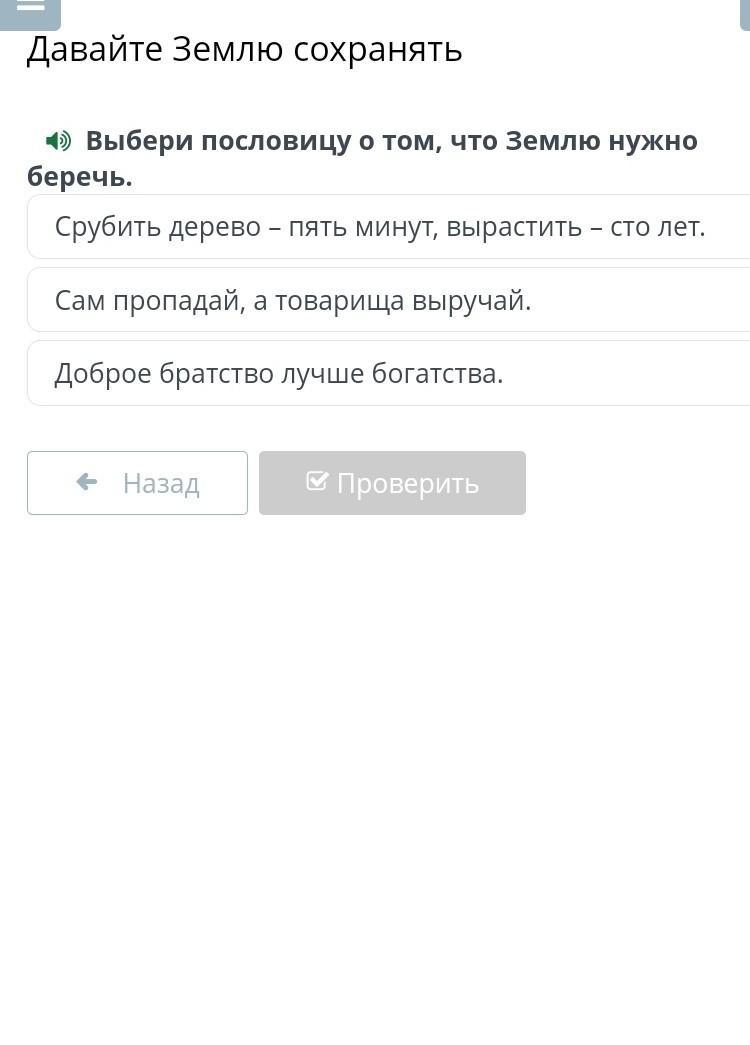 первая пословица: Срубить дерево - пять минут, вырастить - сто лет
