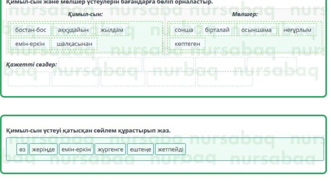 Қимыл-сын ягоне молшер үстеулерін багандарга бөліп орналастыр.