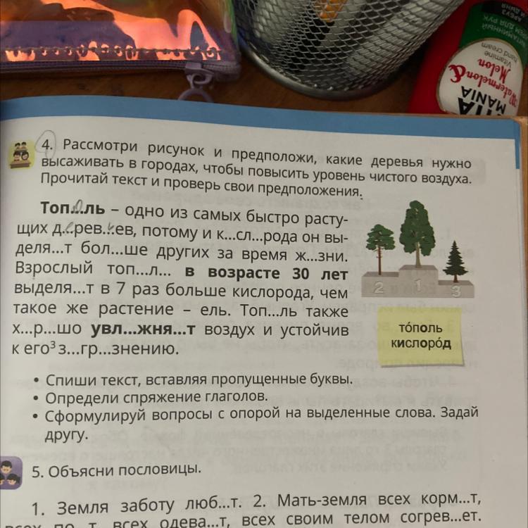 4. Рассмотри рисунок и предположи, какие деревья нужно