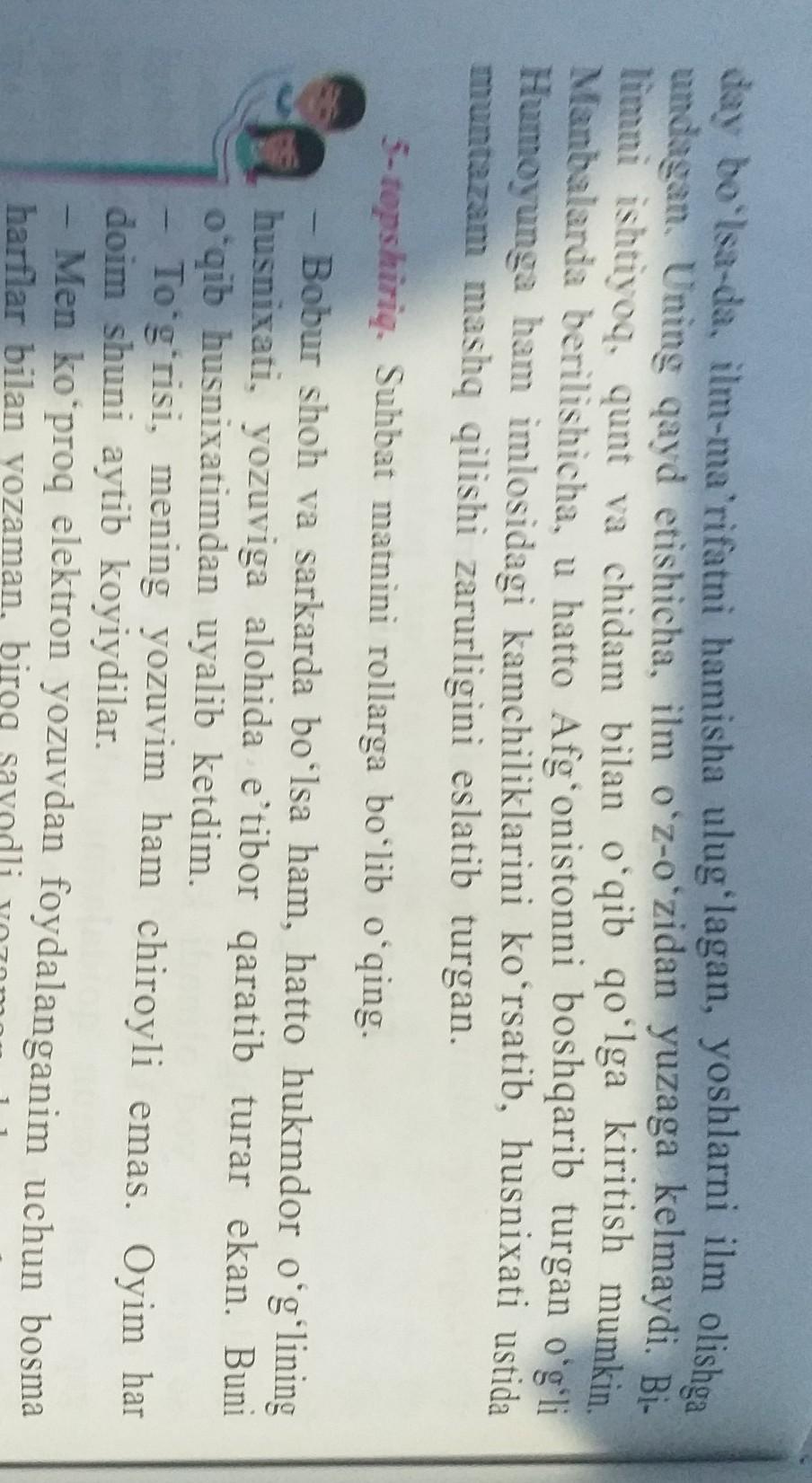 4-mashq. Matnni yozing. Modal so'zlar qatnashgan gaplarni yozing. Modal so'zlarning qo'llanishini tushuntiring.