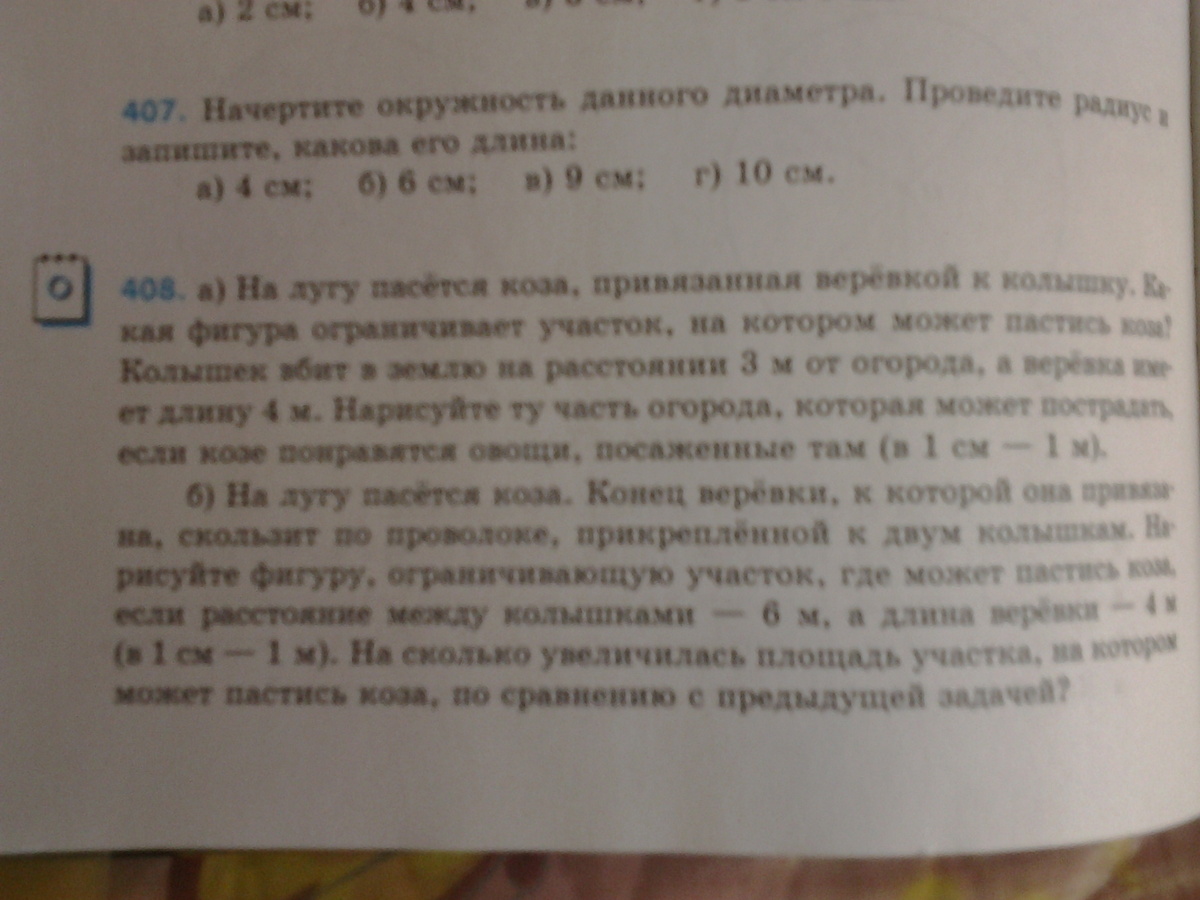 Участок, на котором может пастись коза, ограничивает окружность. Рисунок в приложении. Там та часть, что попадает в круг - нужная.