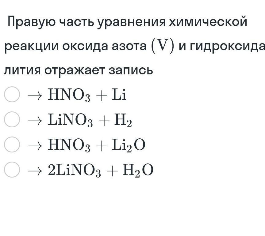 N2O5 + 2LiOH = 2LiNO3 + H2O