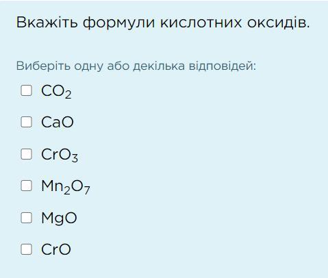 а 1 первое задание что нудно сделать? я украинский не понимаю если найдти кислотные оксиды то это