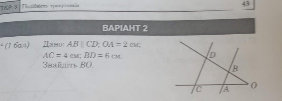 Якщо трикутники подібні, тоді існує пропорція: - шукаємо BO