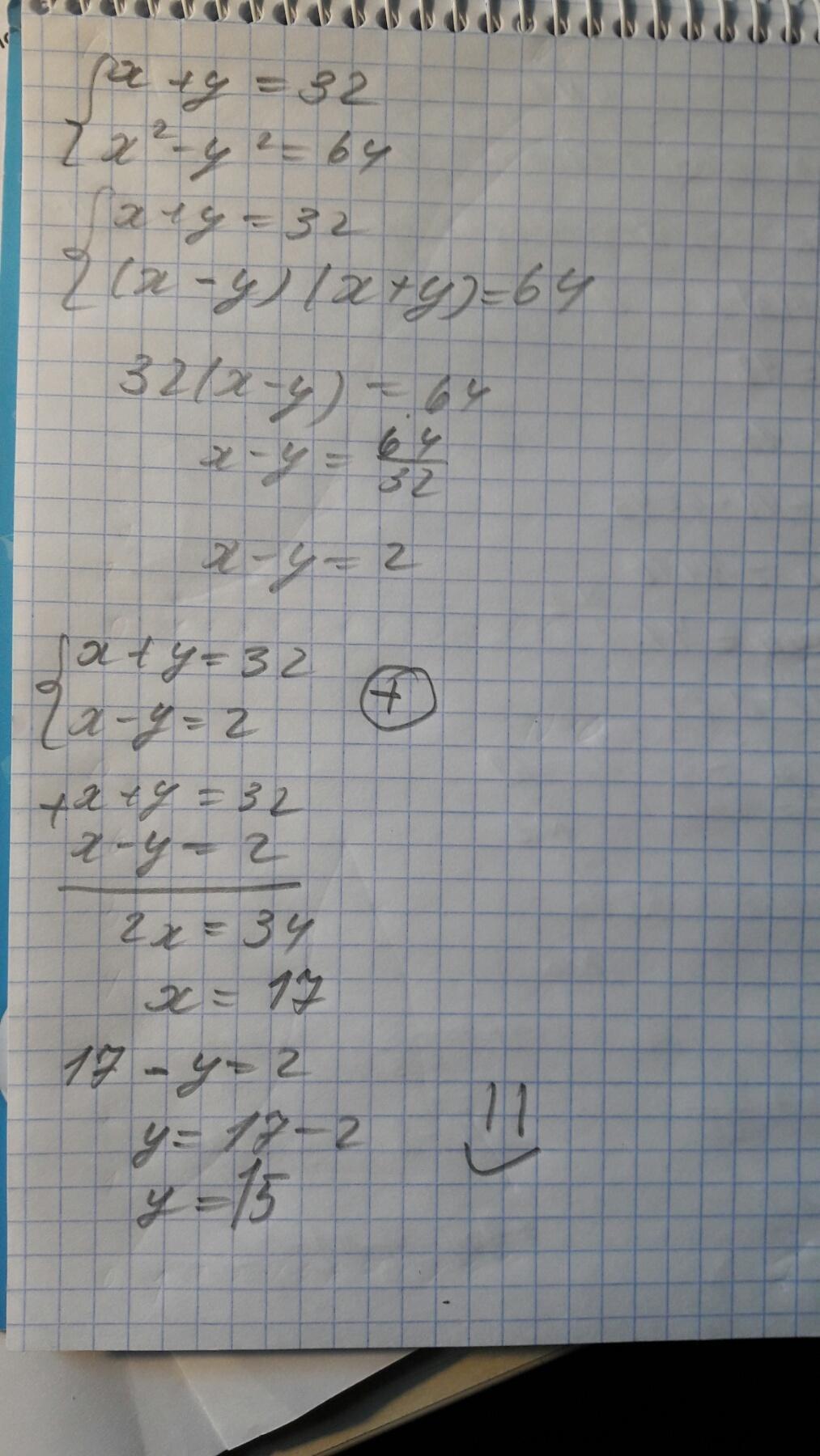 4. Решите задачу с помощью составлення уравнения: Сумма двух чисел равна 32, а разность