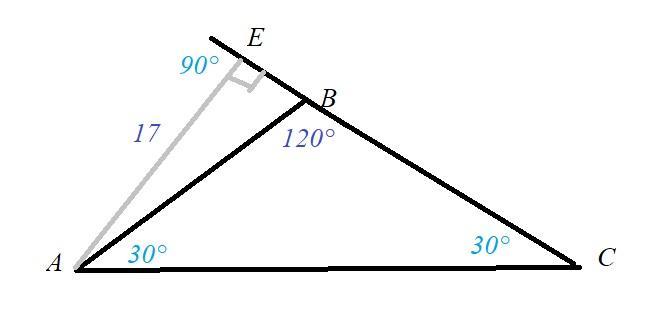 АС=АЕ / sin30* = 17 : 1/2 = 17*2=34.