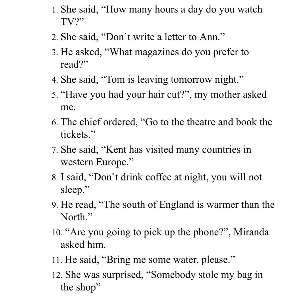 1) she asked me how many hours a day i watched TV