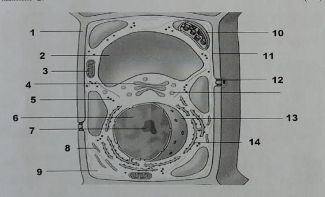 Определите, пользуясь рисунком, название органоидов обозначенными цифрами 1,2,6,9,10
