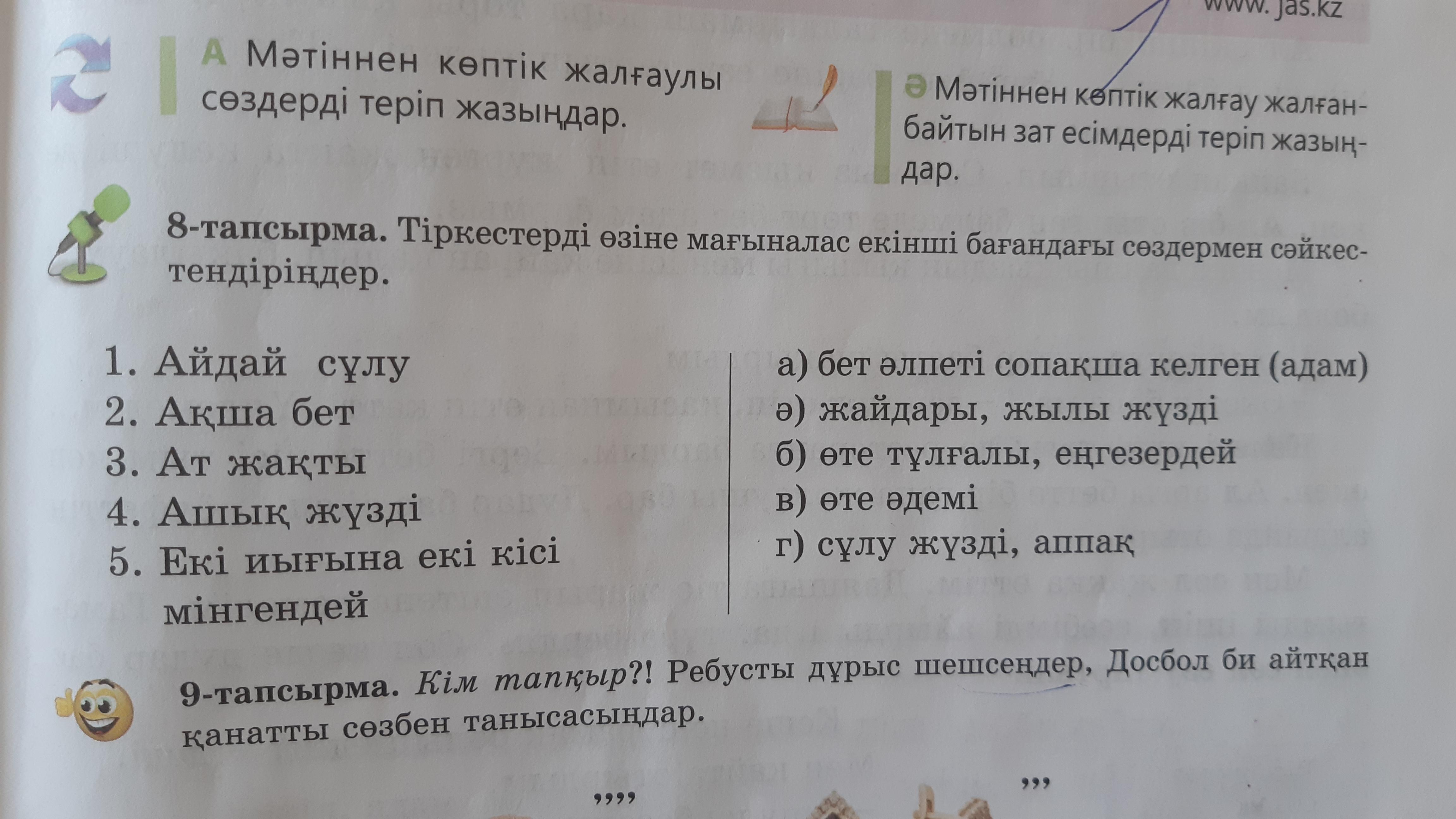 8- тапсырма Тіркестерді өзіне мағыналыс екінші бағындағы сөздермен сәйкестендіріндер ПЖ ПОМОГИТЕ