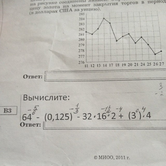 64^(-5/6) -(0,125)^(-1/3) -32*16^(-1 1/2)*2^(-4) +((3^0)^4)*4=