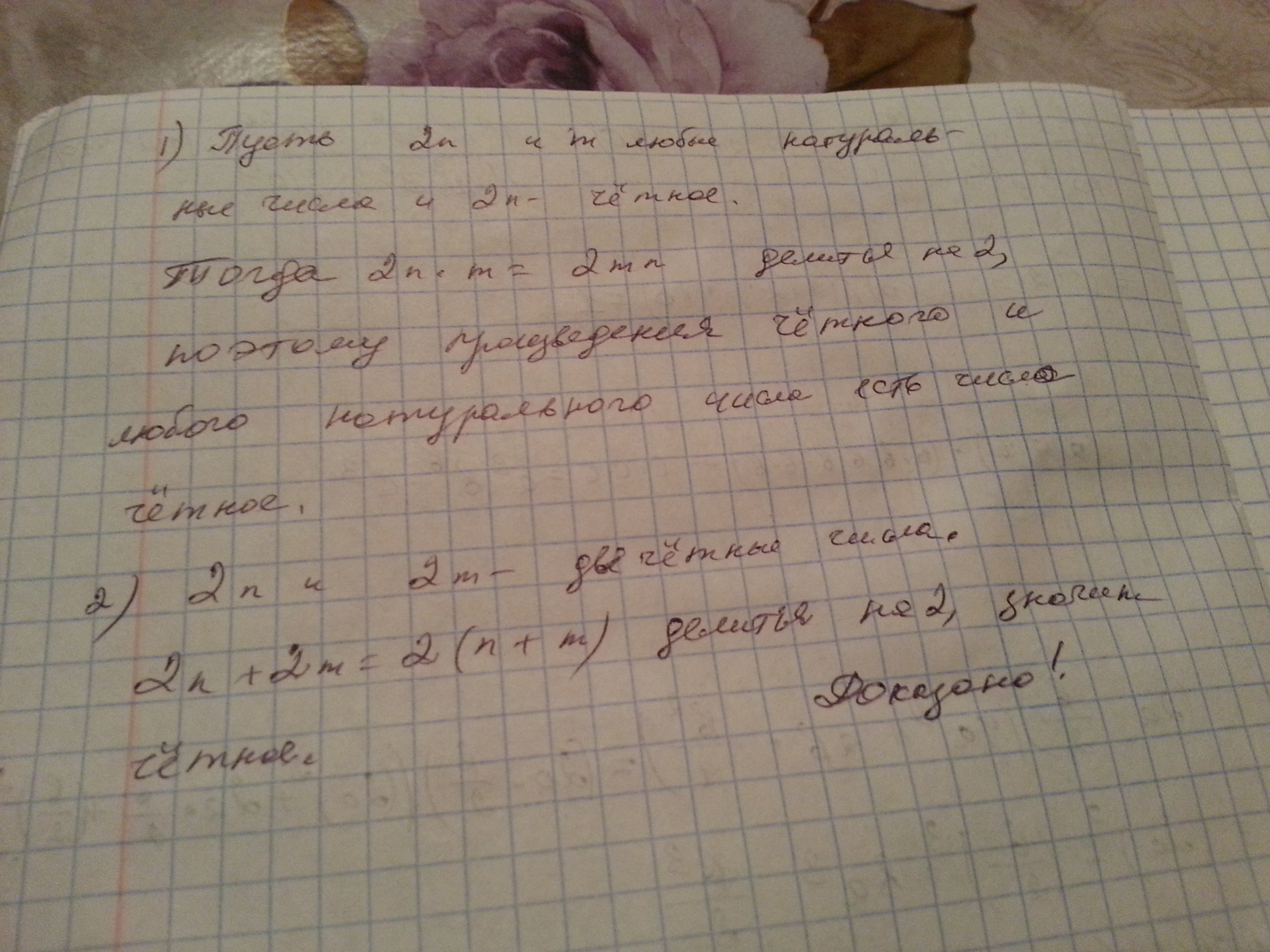 2) Докажите,что сумма двух чётных чисел является чётным числом.