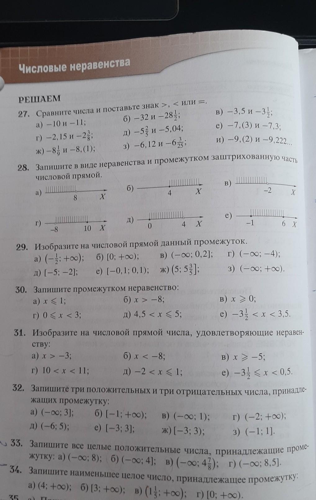 28 . числовая прямая в учебнике есть,записала неравенство и промежуток