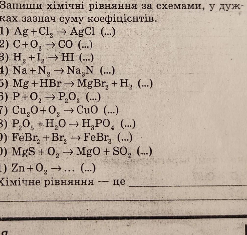 2Zn + O2 = 2ZnO (2+1+2=5)