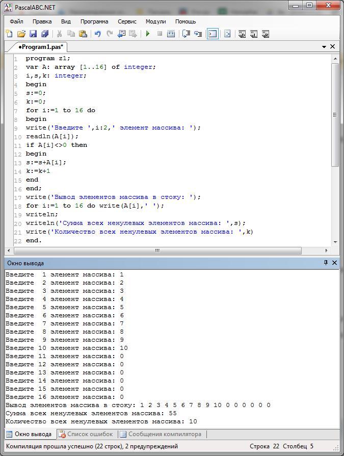 writeln('Сумма всех ненулевых элементов массива: ',s);