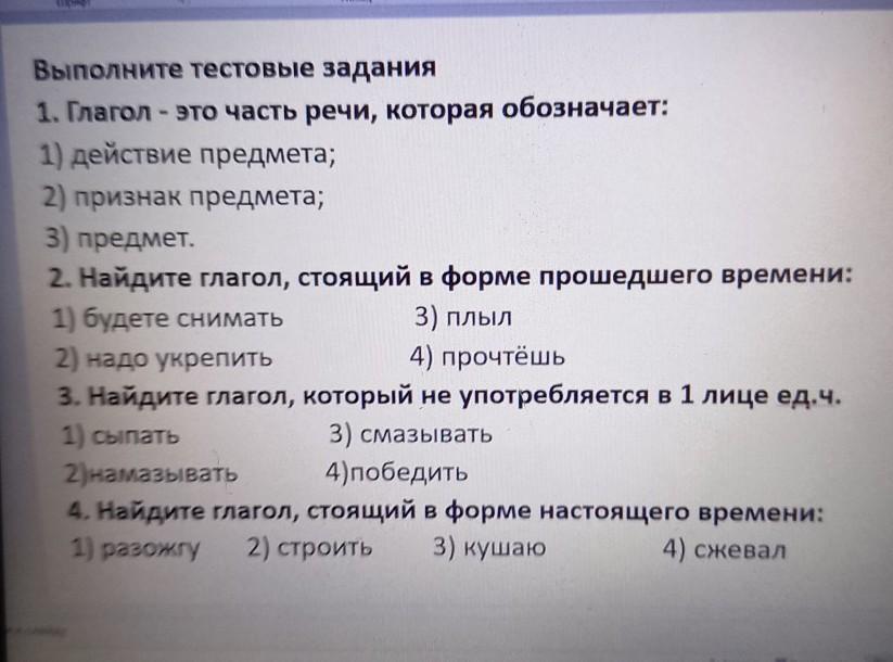 1. Глагол - это часть речи, которпя обозначает действие предмета