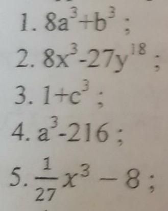 1. 8а³+b³=2³а³+b³=(2а)³+b³=(2а+b)((2а)²-2аb+b²=(2a+b)(4a²-2ab+b²)