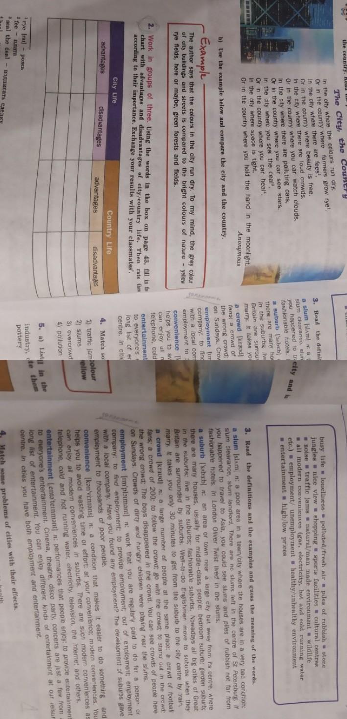 2. Disadvantages city: lollyness, shopping,hot and cold running water, modern conveniences, cultures center, pollution.