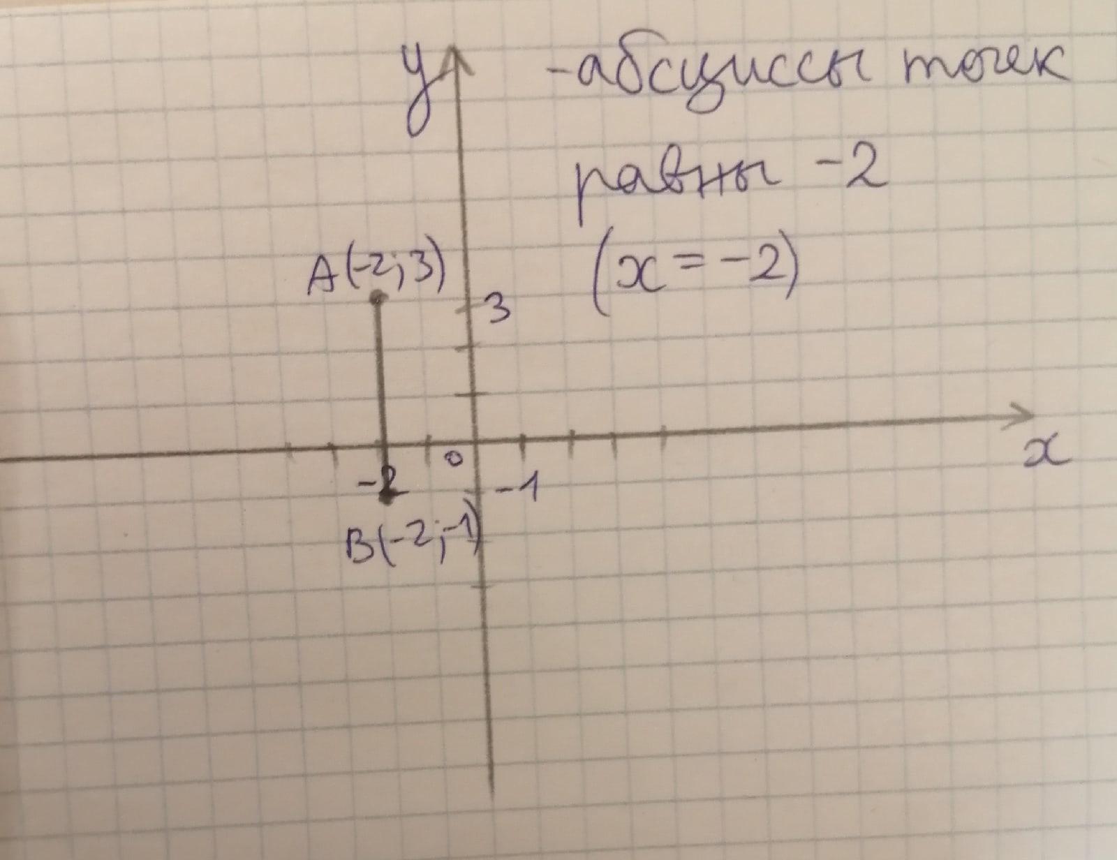 построить прямую проходящую через точки A (-2;3) и B (-2;-1) чему равны абциссы точек лежащих на прямой AB