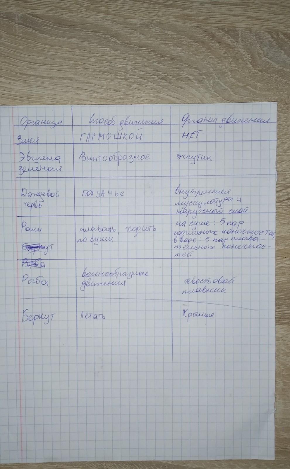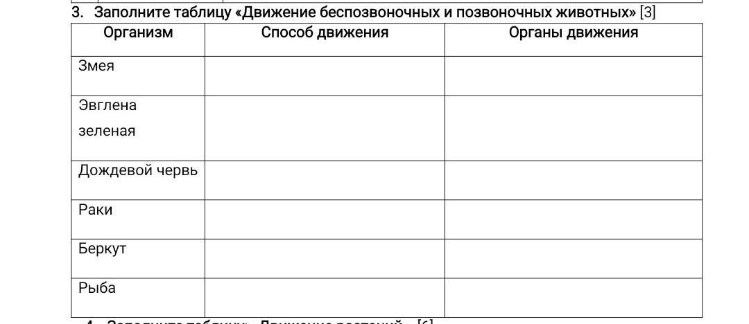 Заполните таблицу «Движение беспозвоночных и позвоночных животных» [3]