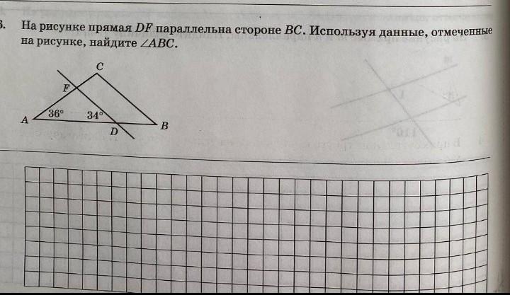 на рисунке прямая DF параллельна стороне BC. используя данные отмеченные на рисунке найдите угол ABC