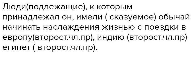 Синтаксический разбор предложения: Люди, к которым принадлежал он, имели обычай начинать наслаждение жизнью с поездки в Европу, в Индию, в Египет.