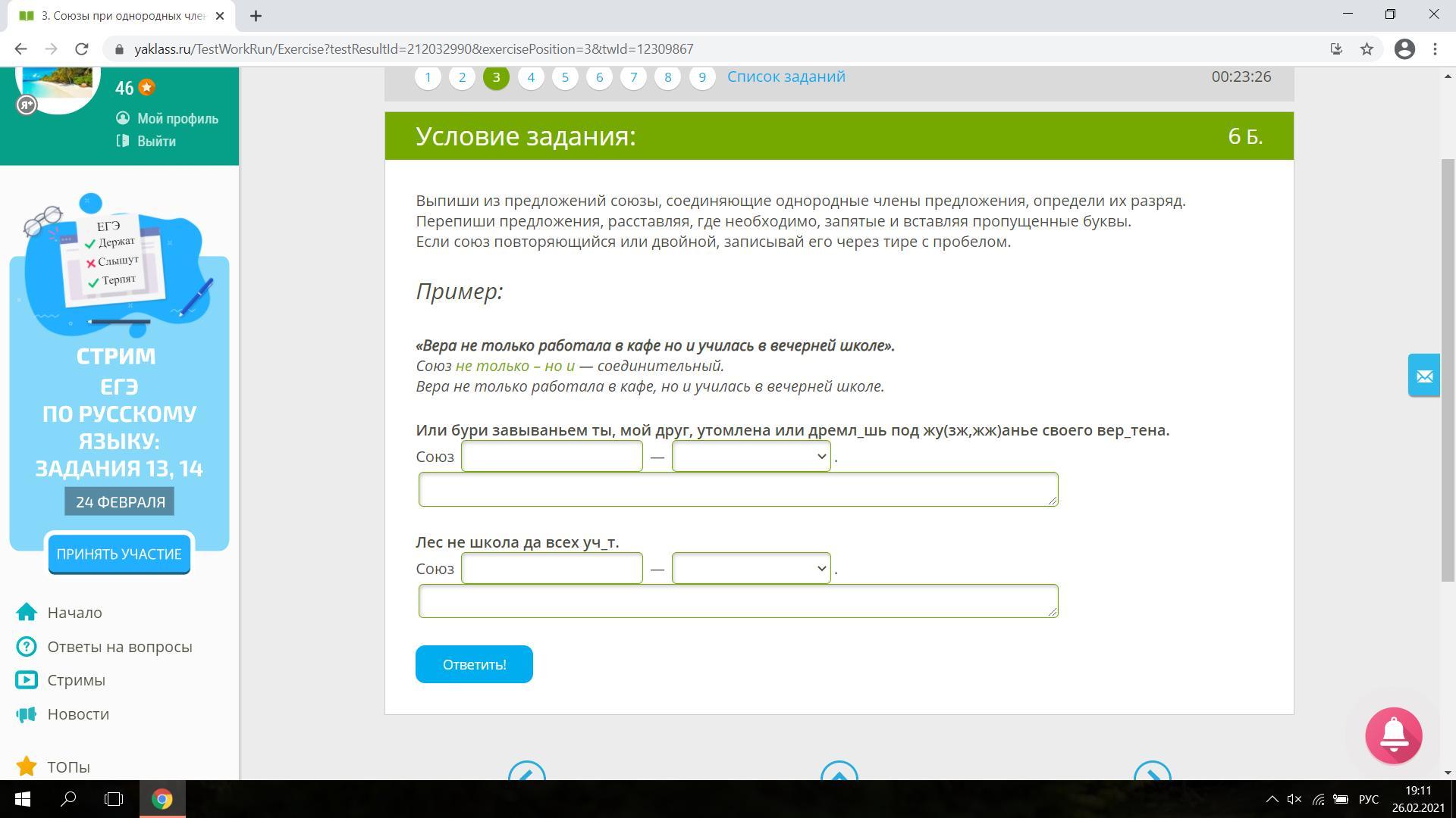 Выпиши из предложений союзы, соединяющие однородные члены предложения, определи их разряд.