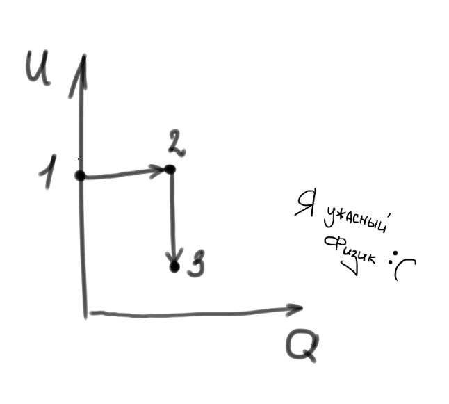 2-3 Q=const, U2>U3 => dU<0 (я думаю тут изобарное сжатие) => V2>V1 (объем уменьшался)