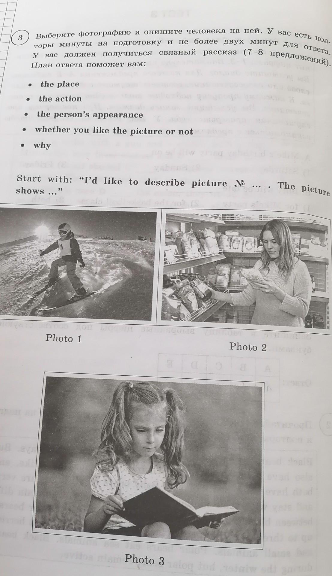 I'd like to describe picture number three. The picture shows girl who reading a book on the field. Little girl with two ponytails, she has small nose and thin lips. You can see that girl is intrested on reading the book. I love the weather in the picture because it's warm here and you can wear a T-shirt and shorts.