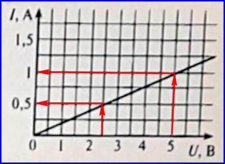 U2=2,5 B => I2=0,5 A