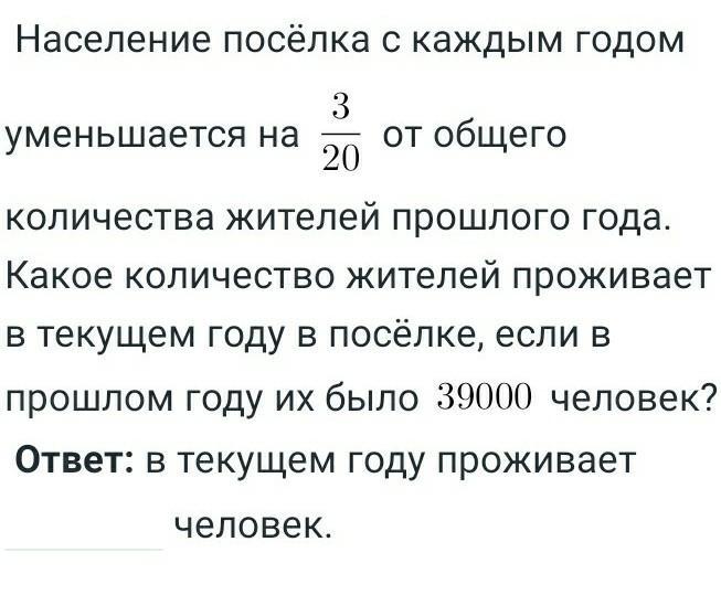 найдем сколько жителей уменьшилось за этот год для этого общую сумму жителей из прошлого года мы умножим на часть которая уменьшается