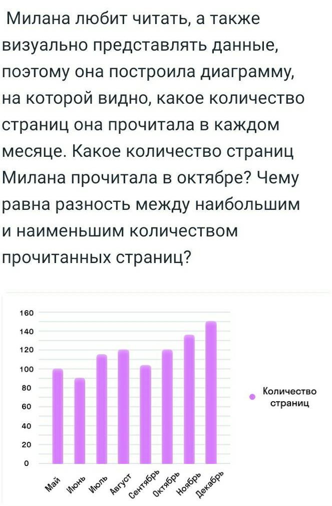 1.Разность между наибольшим и наименьшим количеством прочитанных страниц равна