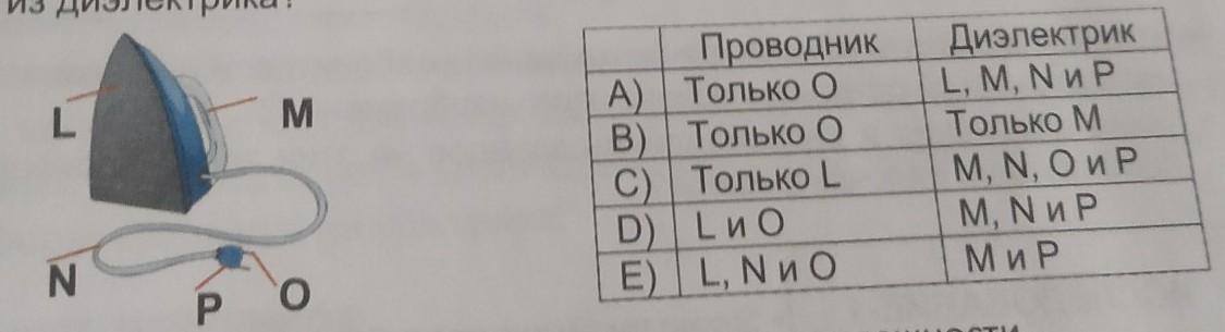 Тк О является проводником тока в утюге, а L M N P диэлектрики, не дают тебя ударить током