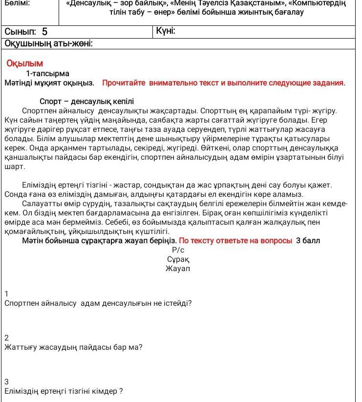 1)Спортпен айналысу денсаулыққа пайдалы,
